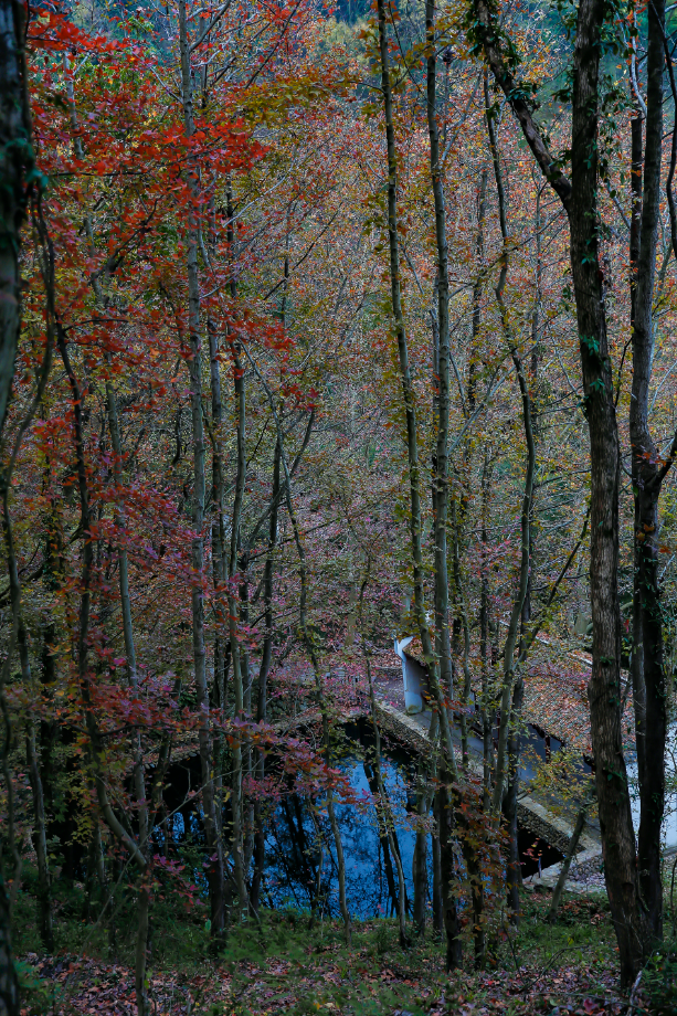 少了树叶的留存,笔挺的树干苍劲生长。冬日的江南虽没有北方皑皑大雪的挥毫,但在经纬度与季风气候的调控下,树叶颜色丰富,错落有致。途径山丘,穿过小道,与林中的湖泊相遇,是寻找自我实现的好去处。山音交响,似仙境的召唤,亦是来自内心渴望自然与宁静的殷切呼唤。
